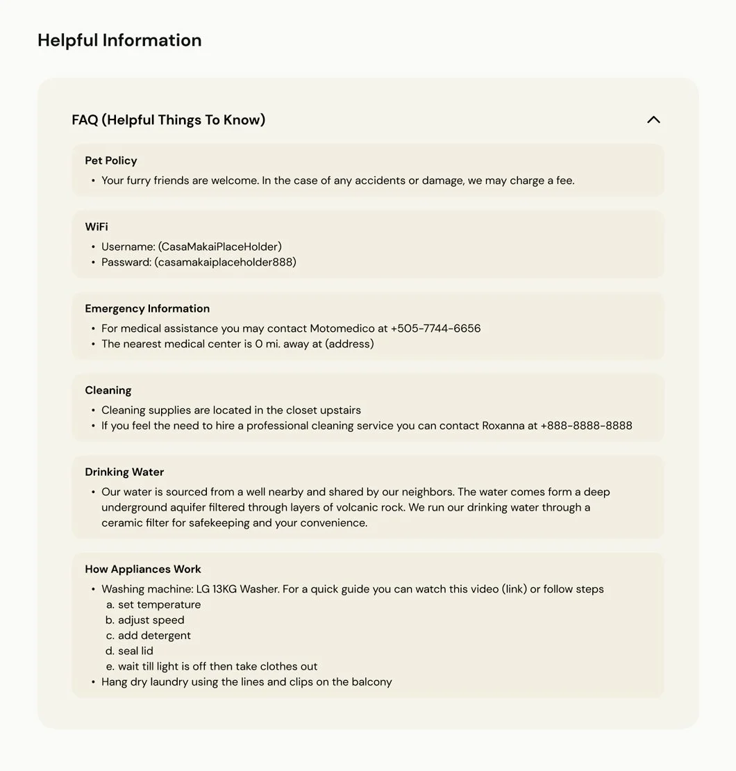 Improve the entire experience of traveling, booking, and staying at Casa Makai, by providing travelers with an intuitive guide to all their questions.